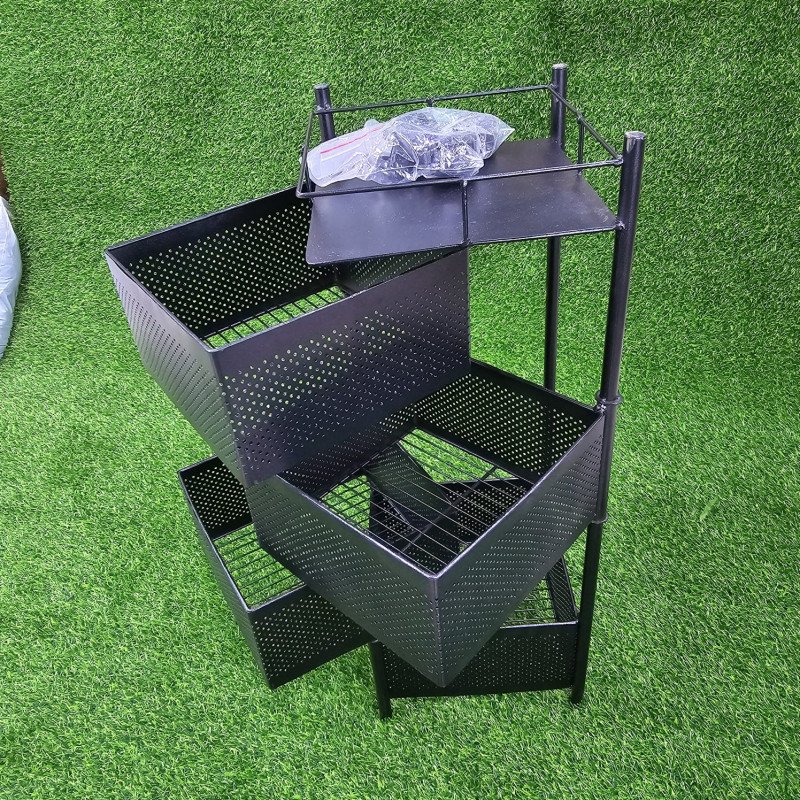 4 layer square shape kitchen rack - Metal Body Black Color
